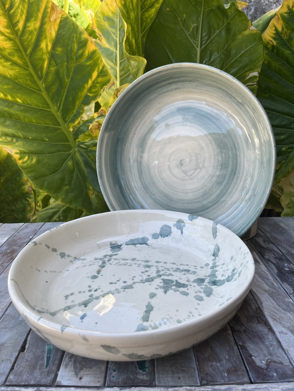 Tamaño 30cm (diametro) x 7cm (altura) Producto de ceramica esmaltada. Todas las piezas son artesanales, cada pieza es unica en color y diseño. El esmalte puede craquelar, evitar choque termico. Apto para horno microondas y lavavajilla